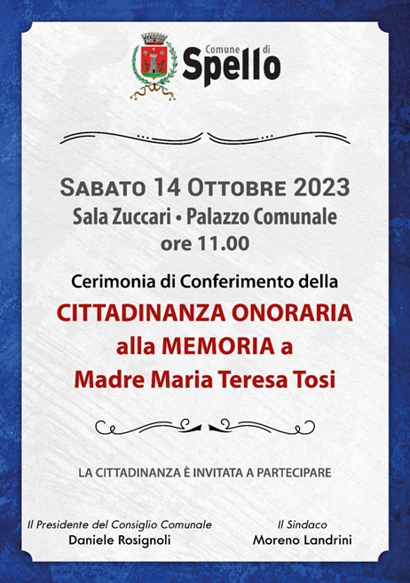 In seguito il conferimento della cittadinanza onoraria a Madre M.Teresa. Il libro storico ben documentato,